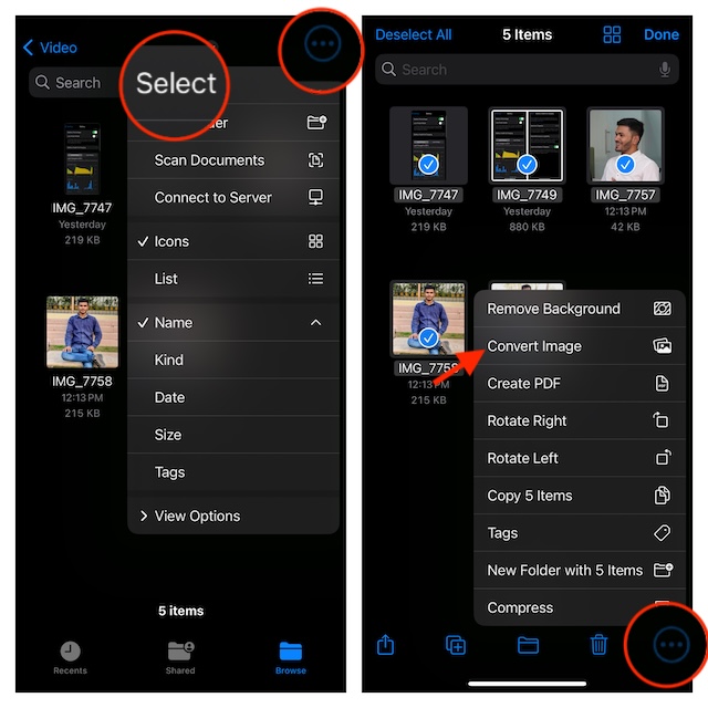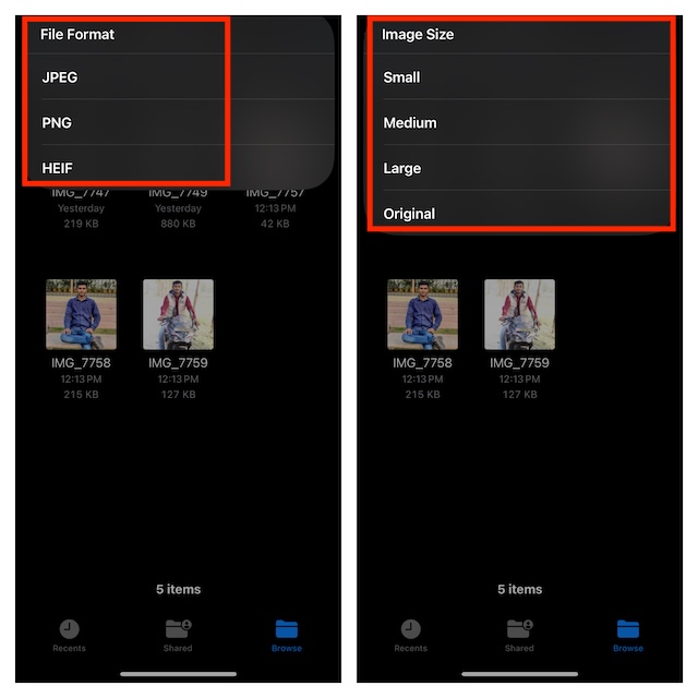 Apple Files uygulaması, seçtiğiniz resmin dosya biçimini anında dönüştürecek ve aynı klasöre kaydedecektir. Bu nedenle, görüntüyü kullanmaya başlayabilir veya hemen herhangi biriyle paylaşabilirsiniz.