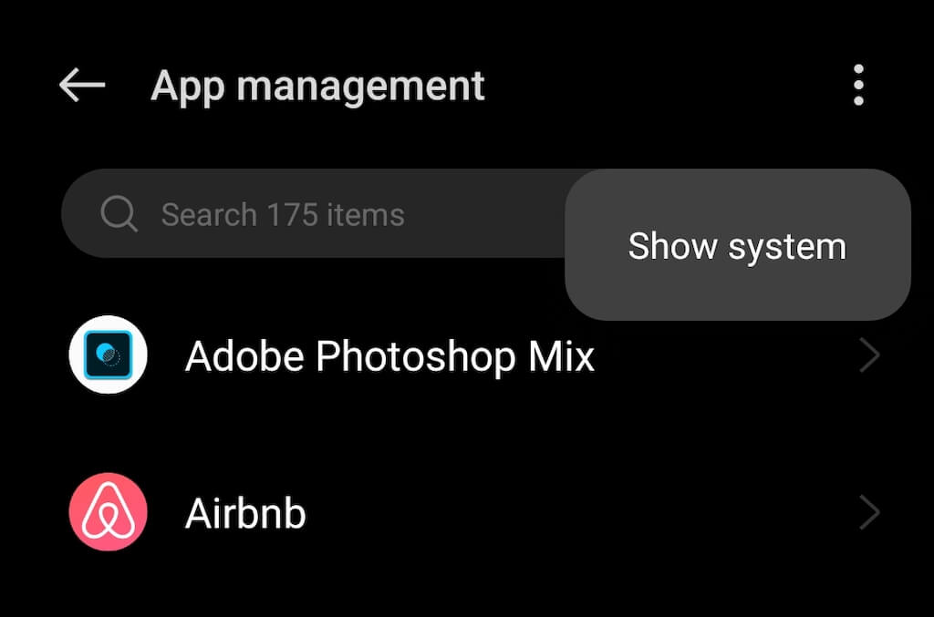 Yolu takip edinAyarlar>Uygulamalar>Tüm uygulamaları görünUygulama listesine erişmek için telefonunuzda. Aradığınız bir sistem uygulaması ise, ekranın üstünden üç noktalı menüyü açın ve seçinSistemi Göster.