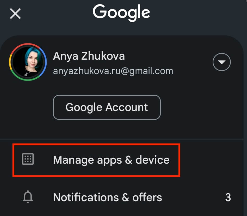 - Play Store'da seçinProfil simgesimenüyü açmak için.