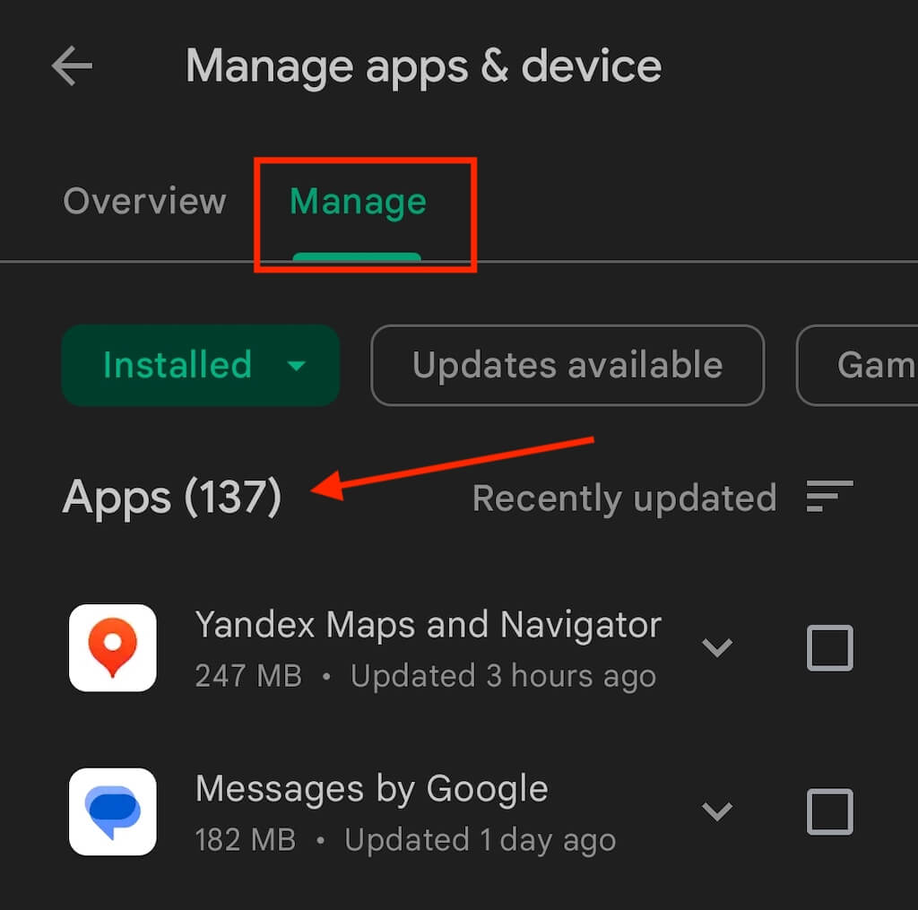 - Menüden seçinUygulamaları ve Cihazı Yönetin.