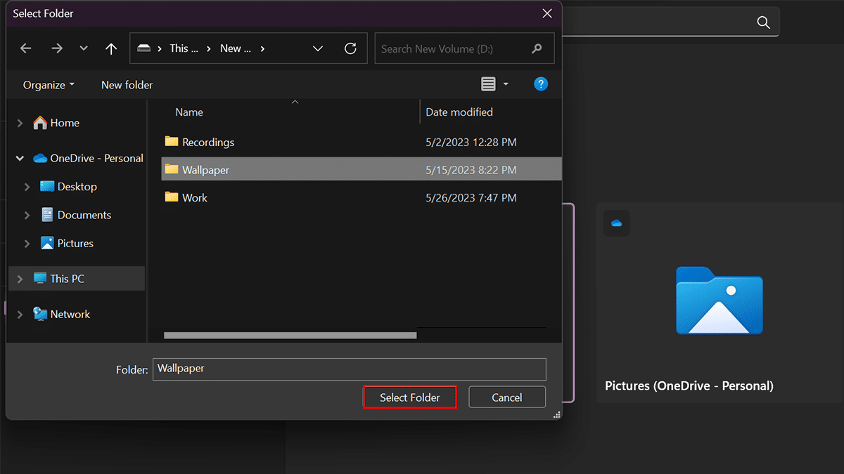 - Fotoğraf uygulamalarına dahil edilecek klasör konumunu seçin>Klasör seçindüğme.