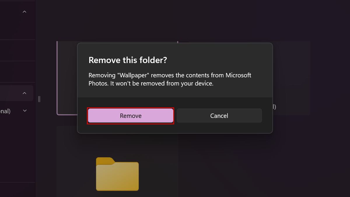 - İşiniz bittiğinde, klasör bilgisayarınızda mevcut olmaya devam edecektir, ancak içeriği artık fotoğraf uygulaması aracılığıyla kullanılamayacaktır.