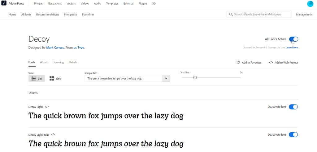 - Kullanmak istediğiniz yazı tipini bulmak için göz atın. Adobe Fonts web sitesine götürüleceksiniz.