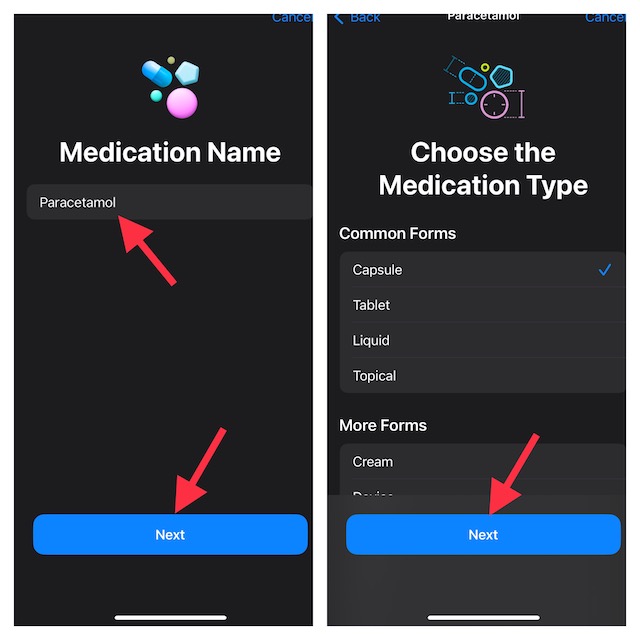 5.İlaç adını yazın ve İleri'ye dokunun.