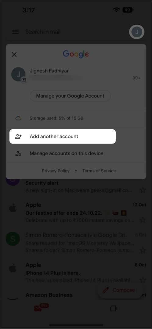 İPhone'daki Gmail uygulamasına birden fazla hesap ekleyin
