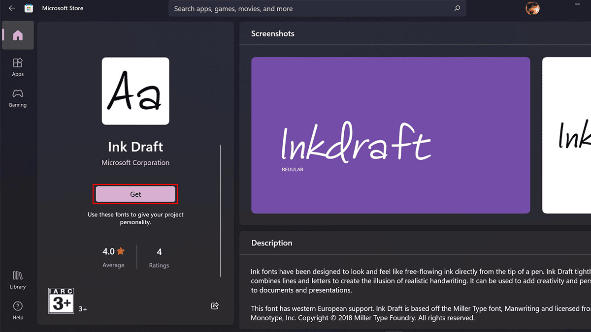 - TıklayınMicrosoft Store'da daha fazla yazı tipi alınseçenek.