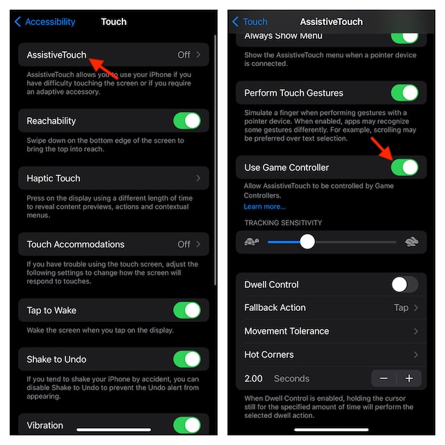 - İPhone'unuzdaki Ayarlar uygulamasına gidin -> Erişilebilirlik -> Touch -> AssistiveTouchOyun Denetleyicisi kullanın.