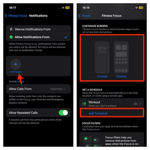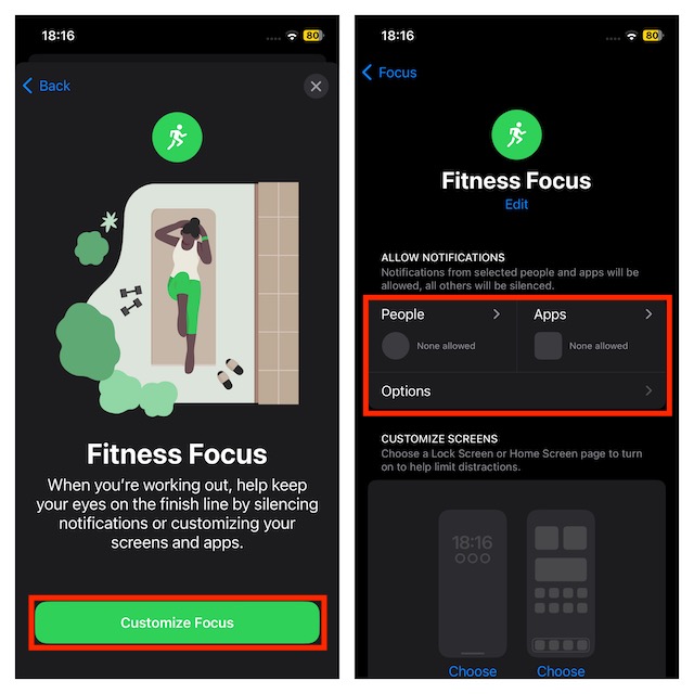 Peki, çalışırken hiç bitmeyen bildirimleri nasıl susturuyorsunuz? Bu özellik, fitness odak modunu eşleştirilmiş iPhone'unuza ayarlamanızı gerektirir. Bu modu mükemmel bir şekilde ayarladıktan ve özelleştirdikten sonra, Bağlı İzleme'de aramalar ve uyarılar otomatik olarak kapatılır. Böylece, herhangi bir rahatsızlık vermeden antrenmanınıza konsantre olabilirsiniz.
