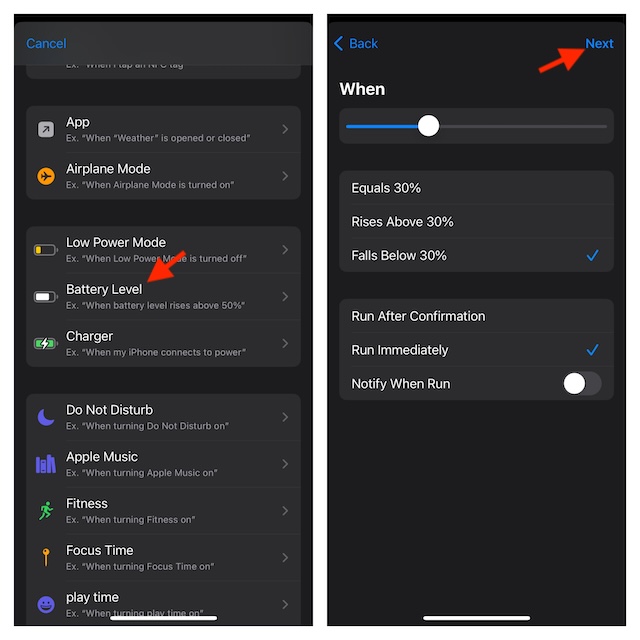 Şu andan itibaren, iPhone'unuzun pil seviyesi seçildiği gibi belirli bir yüzdeye ulaştığında kişisel otomasyonunuz devreye girecektir.