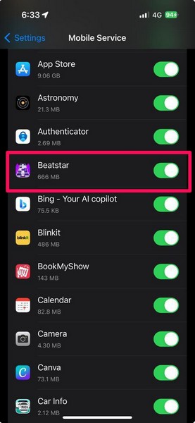 Şimdi, oyun oynarken mobil verilerinize güveniyorsanız, bu hileyi iPhone'unuzdaki bireysel oyunlar için reklamları engellemek için kullanabilirsiniz. Bildiğiniz gibi, cihazınızda etkinleştirilse bile iPhone'unuzdaki tek tek uygulamaların ve oyunların mobil verilerinizi kullanmasını önleyebilirsiniz.