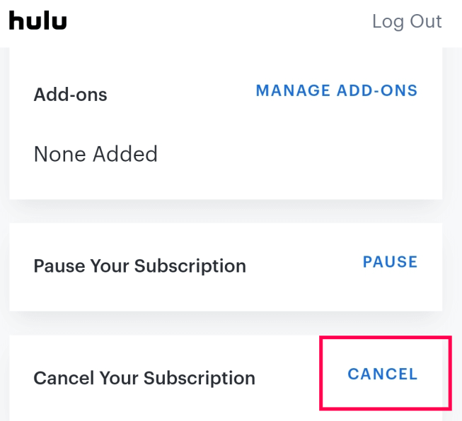 Hulu daha az dramatik bir abonelik seçeneği sunar. Sonuçta, sizi müşteri olarak tutmak istiyorlar. Bu nedenle, aboneliğinizi iptal etmek yerine, planınızı her zaman duraklatabilir veya değiştirebilirsiniz.