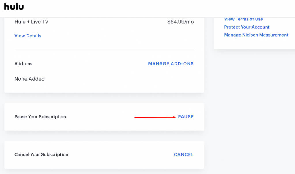 4. BulAboneliğinizi duraklatınBölümün altında veDuraklamakdüğme.