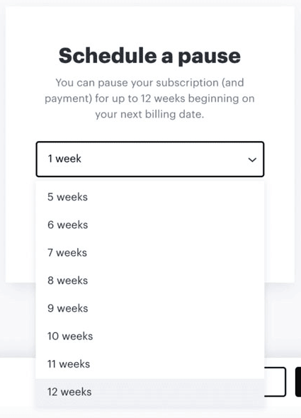 5. Hulu aboneliğinizi 1 ila 12 hafta arasında ne kadar duraklatmak istediğinizi ayarlayabilirsiniz.