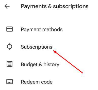 - SeçmeÖdemeler ve Aboneliklermenüde.