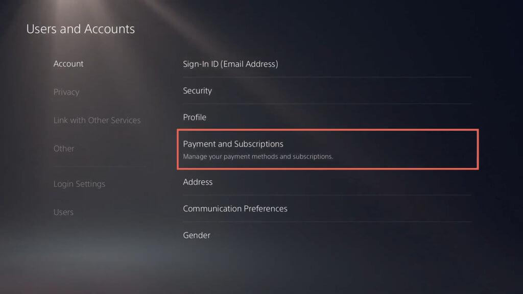 - SeçmeHesap>Ödeme ve AbonelikS (PS5) veyaHesap bilgileri(PS4).