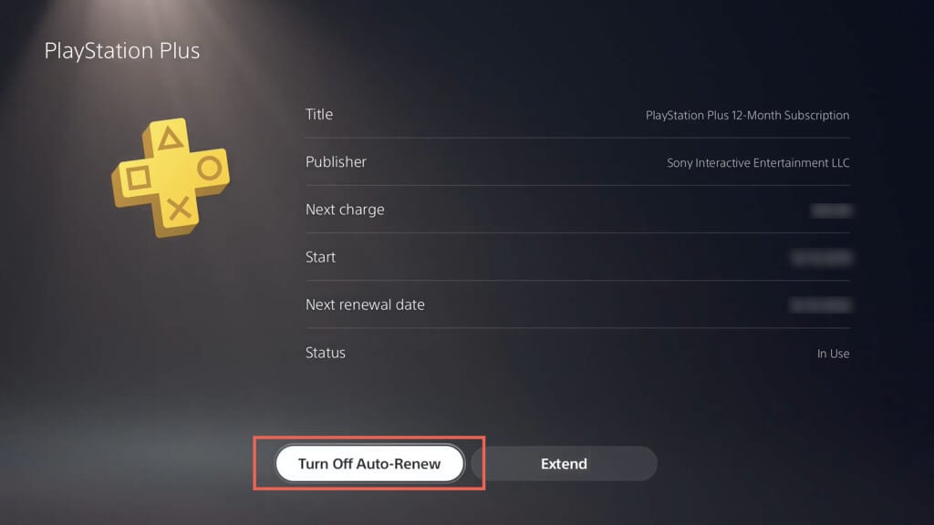 Aşağıdaki abonelik hizmetleri listesinde,Otomatik yenilemeyi kapatınYanında DüğmePlayStation Plus. Hizmete yeniden sübstekle veya süreyi manuel olarak uzatmak için aynı ekrana geri dönün ve seçinOtomatik yenilemeyi açveyaUzatmak.