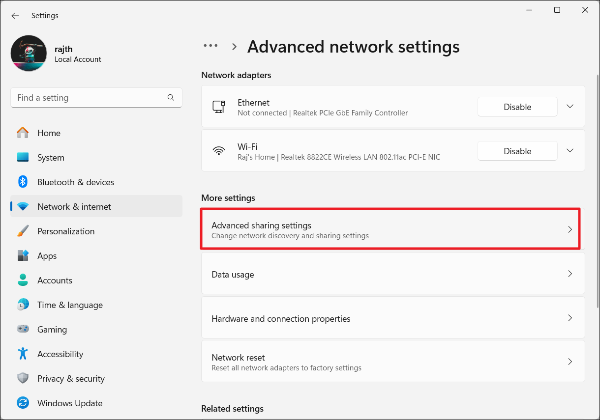 1. Ayarları açın ve seçin 'Ağ ve İnternet'>'Gelişmiş Ağ Ayarları'.