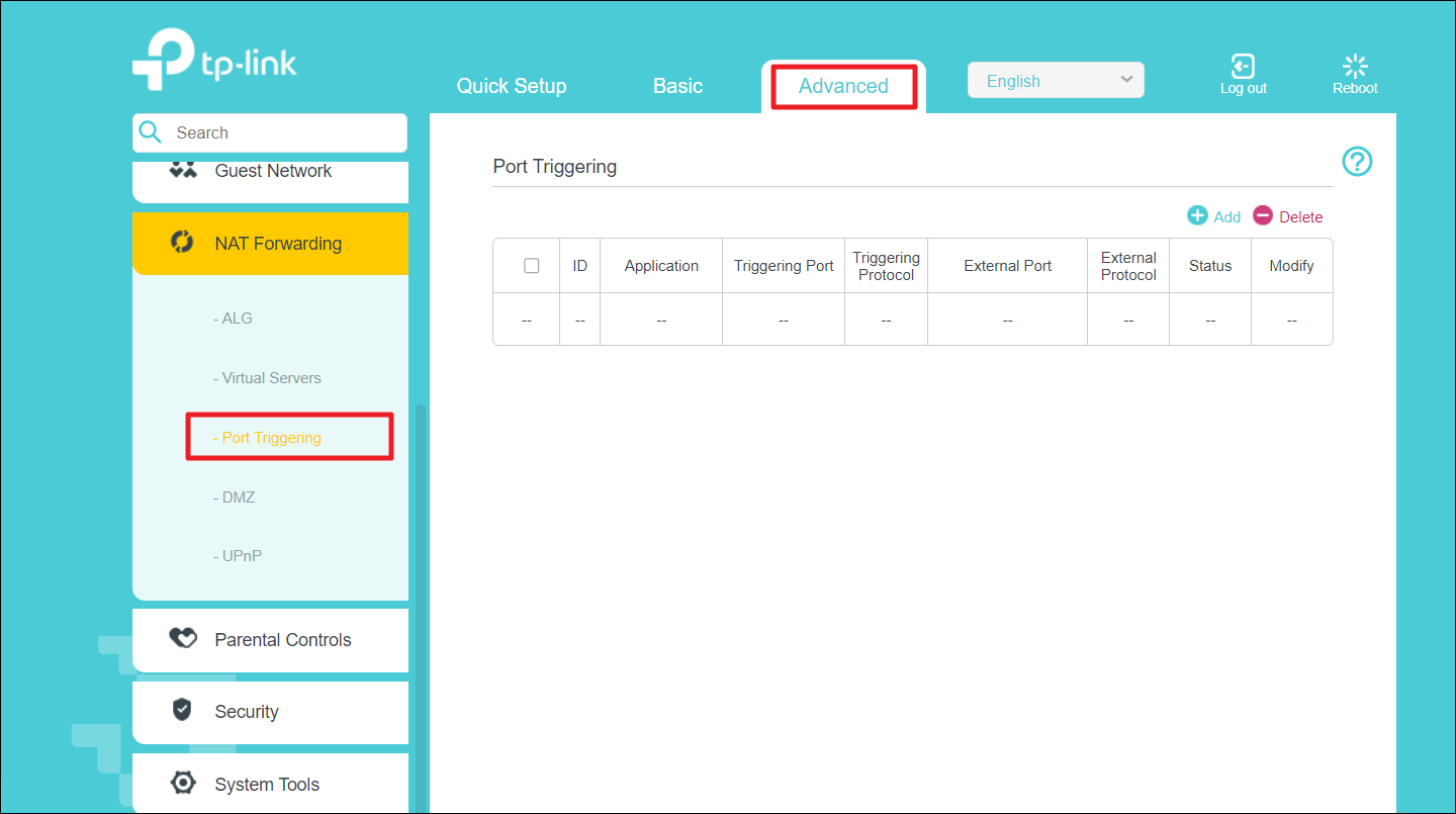 3.Port yönlendirmeAltında AyarlarGelişmişayarlar ve açın. Bazen, bağlantı noktası yönlendirme ayarlarıNat yönlendirme.