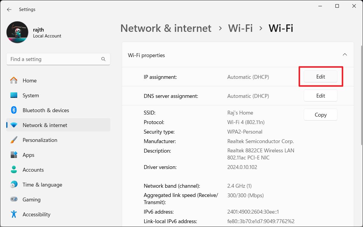 6.DüzenlemekIP atamasının yanındaki düğme.