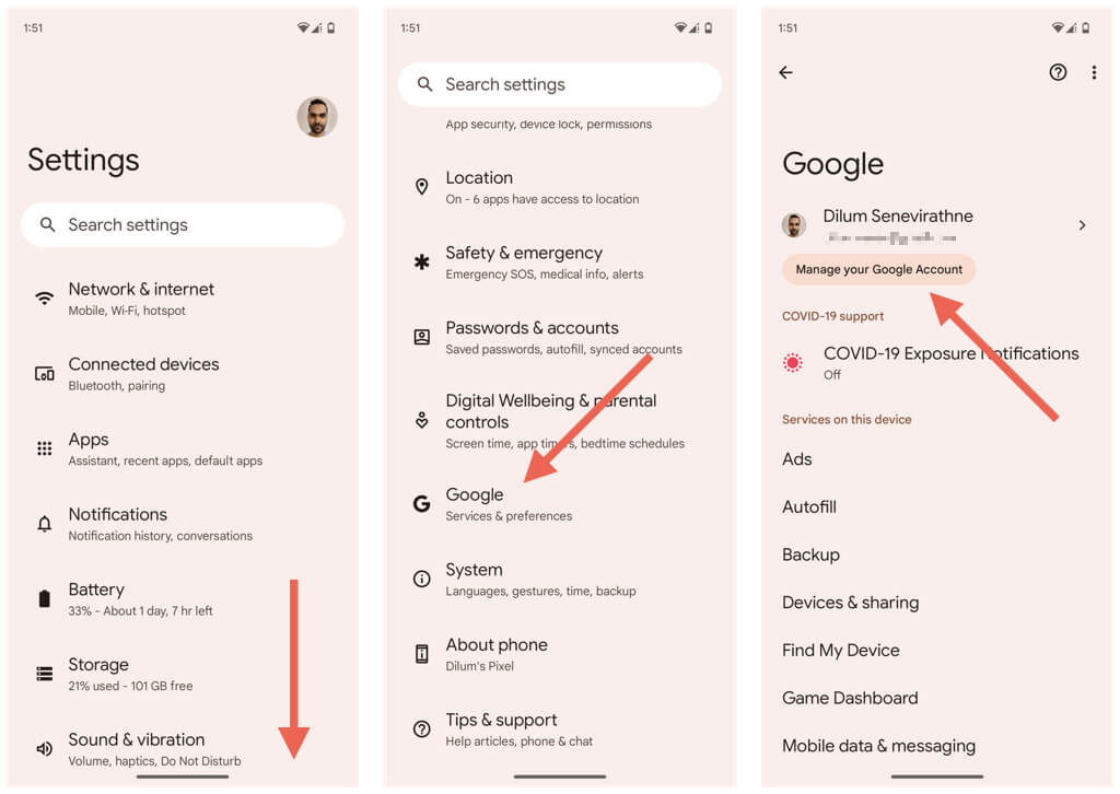 Her şeyin güncel ve doğru olduğundan emin olmak için. Google Hesap Ayarlarınızı ziyaret edin, seçin.Güvenlikve aşağı kaydırınGoogle'da nasıl oturum açıyorsunuzbölüm.