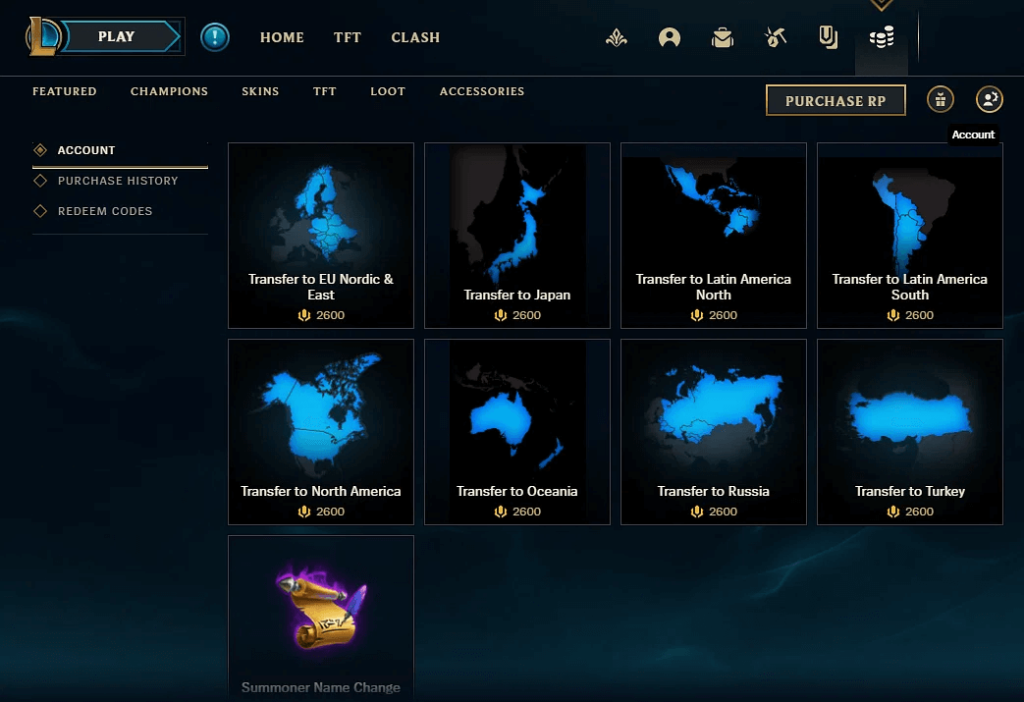 İkinci “sunucu aktarımı” yaklaşımı daha zor bir seçenektir. Riot Games her yıl 1 Ocak'ta bir transfer seçeneği verir. Adımlar: