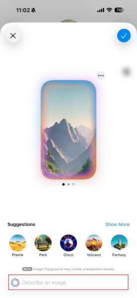 - Kullanarak yeni bir arka plan oluşturunResim Oyun Alanı, Apple Intelligence'ın yaratıcı aracı.