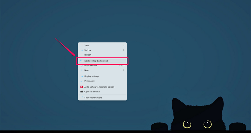 Uygulandıktan sonra, duvar kağıtlarını normal zaman aralıklarında otomatik olarak değiştirecektir. Masaüstü ekranınıza da sağ tıklayın veSonraki masaüstü arka planWindows 11 PC veya dizüstü bilgisayarınızdaki duvar kağıdını manuel olarak değiştirmek için Bağlam menüsünde seçenek.