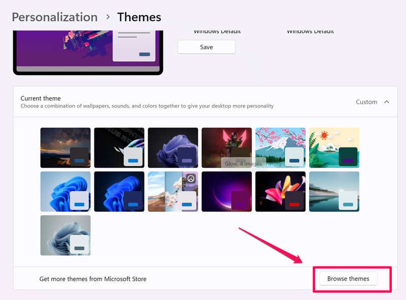 Bu temalar bir dizi yüksek çözünürlüklü duvar kağıtları ile birlikte gelir ve temaları cihazınıza uyguladıktan sonra otomatik olarak aralarında döner. Bu nedenle, Windows 11 PC'nizin veya dizüstü bilgisayarınızın duvar kağıtlarını otomatik olarak değiştirmesine izin vermek için Microsoft Store'dan temaları bulmak ve kullanmak için aşağıdaki adımları izleyin: