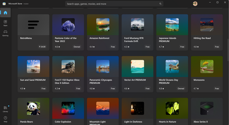 Windows 11 PC'nizi veya dizüstü bilgisayarınızın duvar kağıtlarını otomatik olarak değiştirmesini sağlamanın bir başka yolu da Microsoft Store'dan üçüncü taraf temalarıdır. Görüyorsunuz, Microsoft mağazasında Windows 11 PC'nizde veya dizüstü bilgisayarınızda ayarlayabileceğiniz çeşitli temalar var.