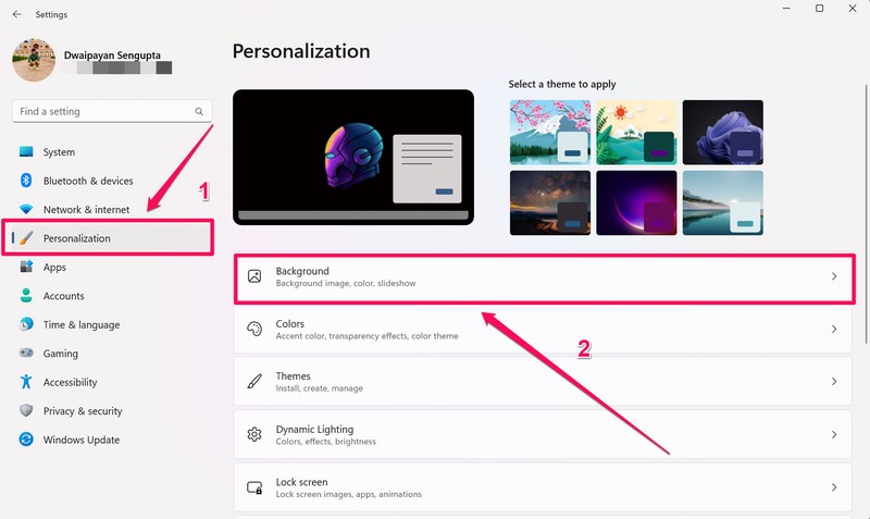 2.TıklayınKişiselleştirmeSolda gezinme çubuğunda sekme veArka planseçenek.