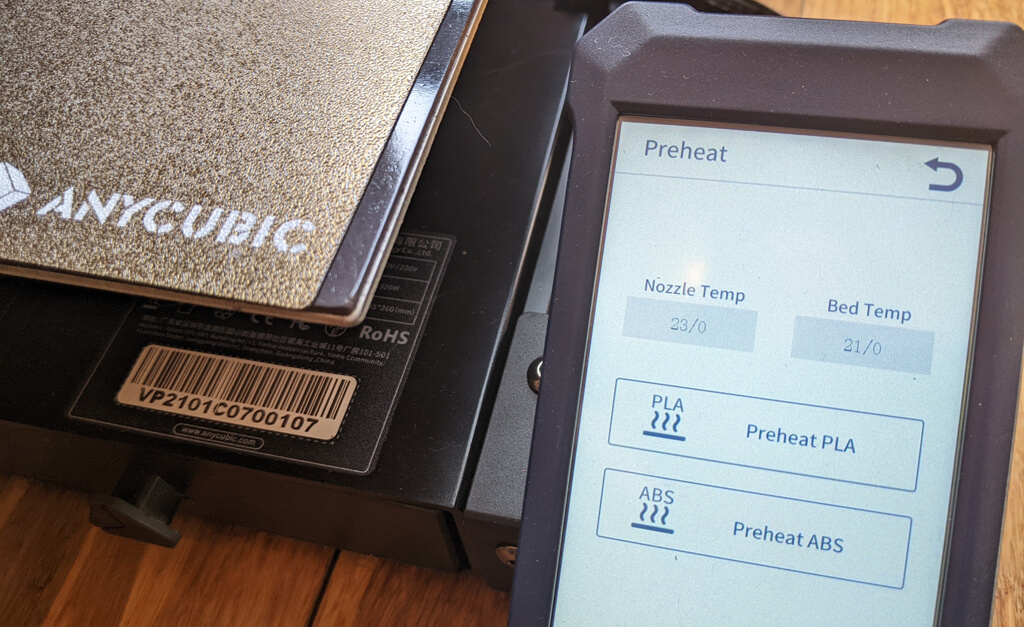 Yazıcıya zaten yüklenmiş filaman için önerilen baskı sıcaklığı aralığını bilmeniz gerekir (varsa)VeYüklemek istediğiniz filaman için önerilen sıcaklık. Sıcak ucu bu iki sıcaklığın daha yüksek seviyesine kadar ısıtın. Bu, daha sonra ekstrüzyon sorunlarını önleyecektir.