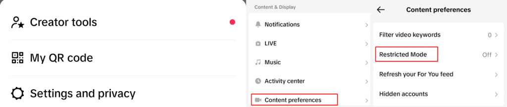 - Aşağı kaydırın ve dokununİçerik Tercihleri.