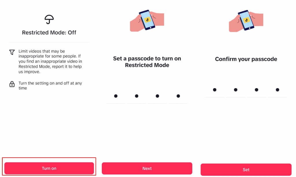- Kısıtlı modu ayarlamak için dört basamaklı bir şifre oluşturun, ardından dokununSonraki.