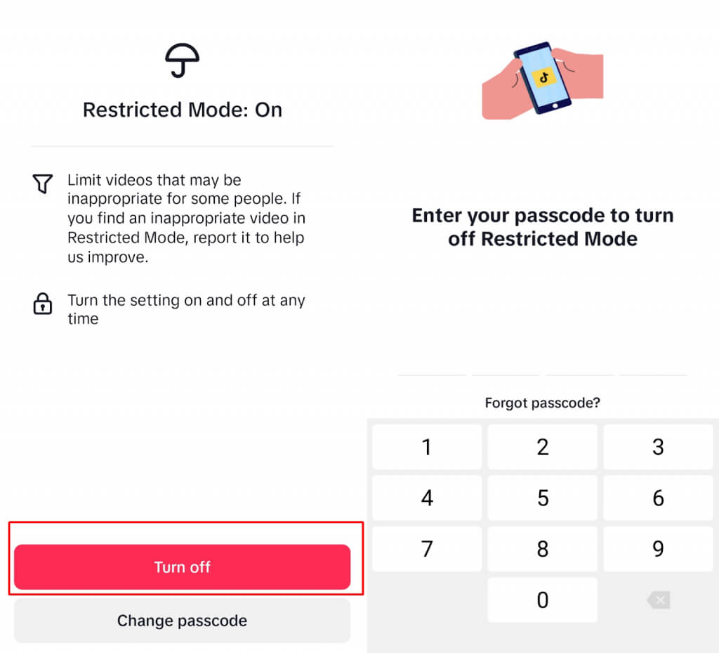- Kısıtlı modu kapatmak için 1'den 5'e kadar adımları izleyin, ardından kapatın ve şifrenizi girin ve dokununSonraki.