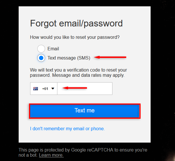 - TıklamakKısa mesaj(SMS)Ardından telefon numaranızı girin ve seçinBana mesaj at.