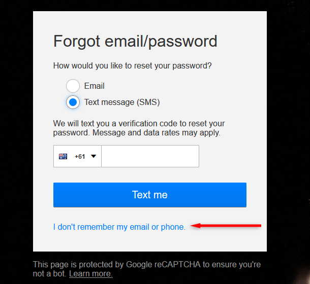 - TıklamakE -postamı veya telefonumu hatırlamıyorum. Bunu görmediysen, yapmak zorunda kalacaksınNetflix desteğiyle iletişime geçinBölgenizde seçenek olmadığı için.