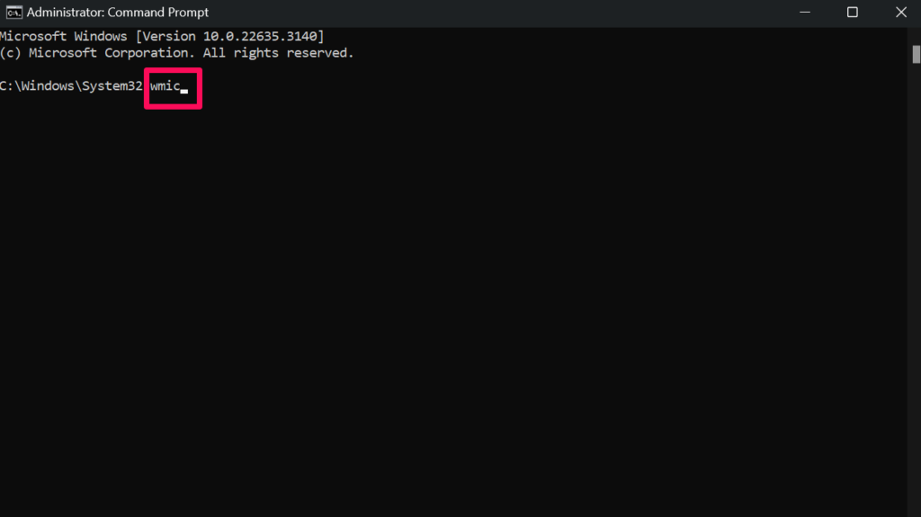2. Windows 11'de komut isteminde WMIC aracılığıyla