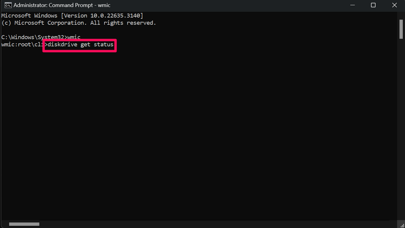 Windows 11'deki sabit sürücü sağlığını kontrol etmenin bir başka yolu, komut istemini kullanarak yerleşik WMIC veya Windows Management Enstrümantasyon komut aracı üzerinden. Modern HDD'lerin veya SSD'lerin çoğunun, herhangi bir yazılım veya üçüncü taraf program gerektirmeden sabit diskin durumunu gösterebilen bir kendi kendini izleme sistemi ile geldiğini görüyorsunuz.
