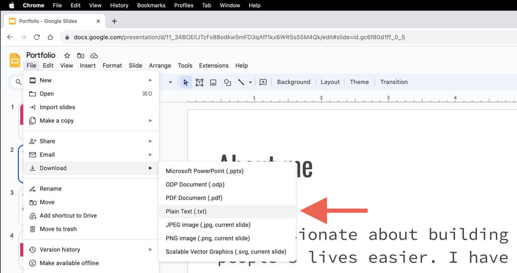 .Txt biçiminde bir Google Slides sunumunu indirmek için: