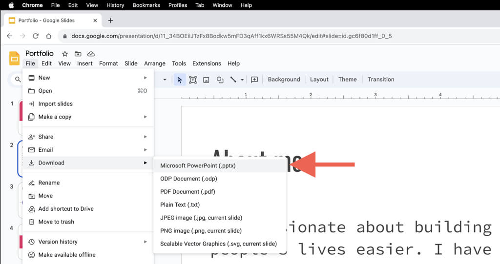 Bir Google Slaytlar sunumunu .pptx dosyası olarak indirmek için: