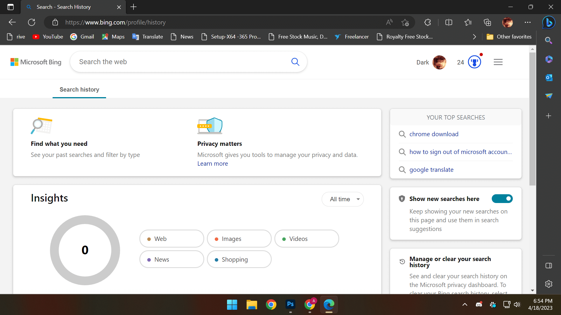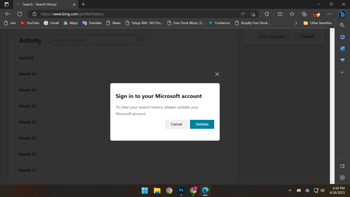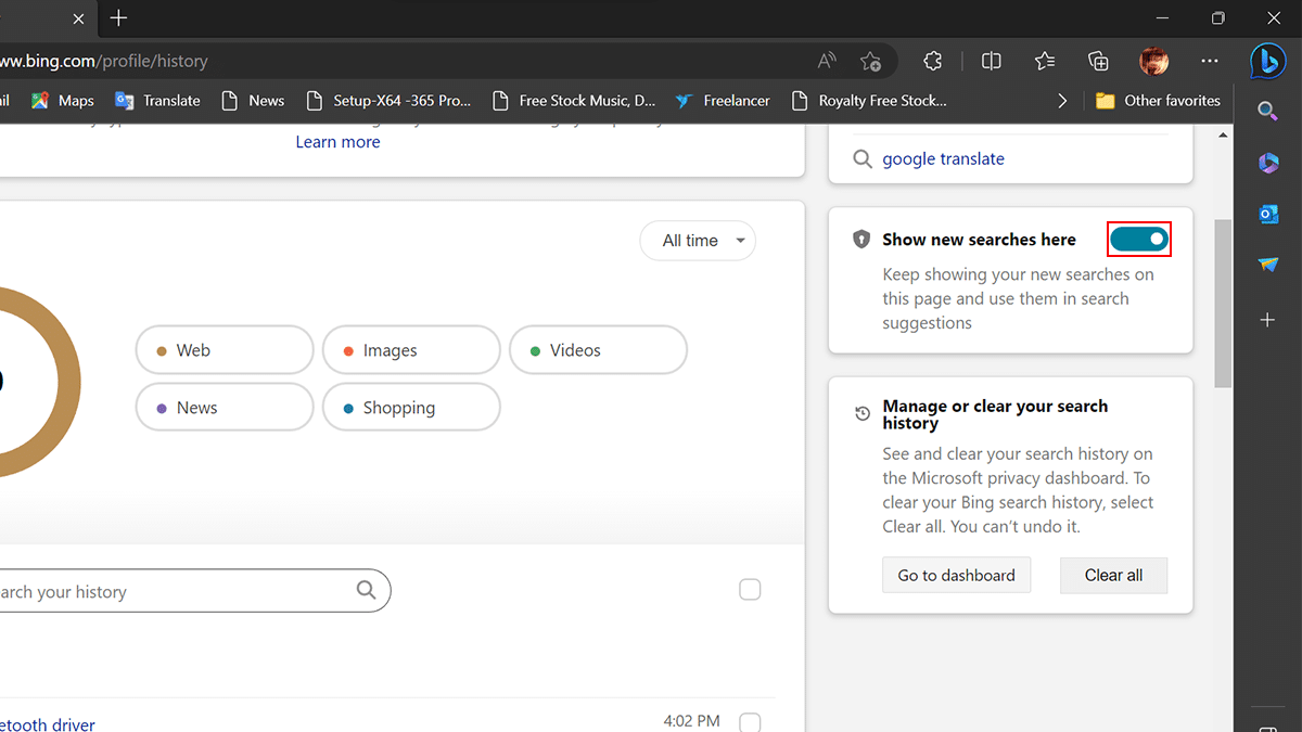 - AçBingArama Geçmişi Sayfası(Kullanmayı tavsiye edinMicrosoft Edge tarayıcısı).