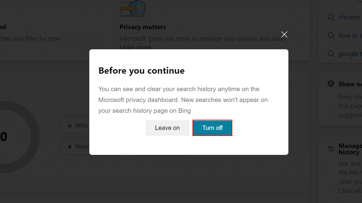 - Bittiğinde sohbet geçmişi kaldırılacak ve arama geçmişi Microsoft hesabından devre dışı bırakılacaktır.