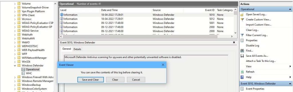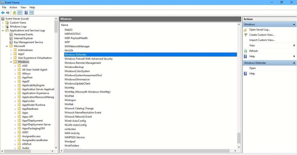 Cihazınızın olay günlüklerini incelemek için yararlı bir araç olan Etkinlik Görüntüleyici Yazılımı, Defender Koruma geçmişini manuel olarak kaldırmanızı sağlar. Bu şekilde: