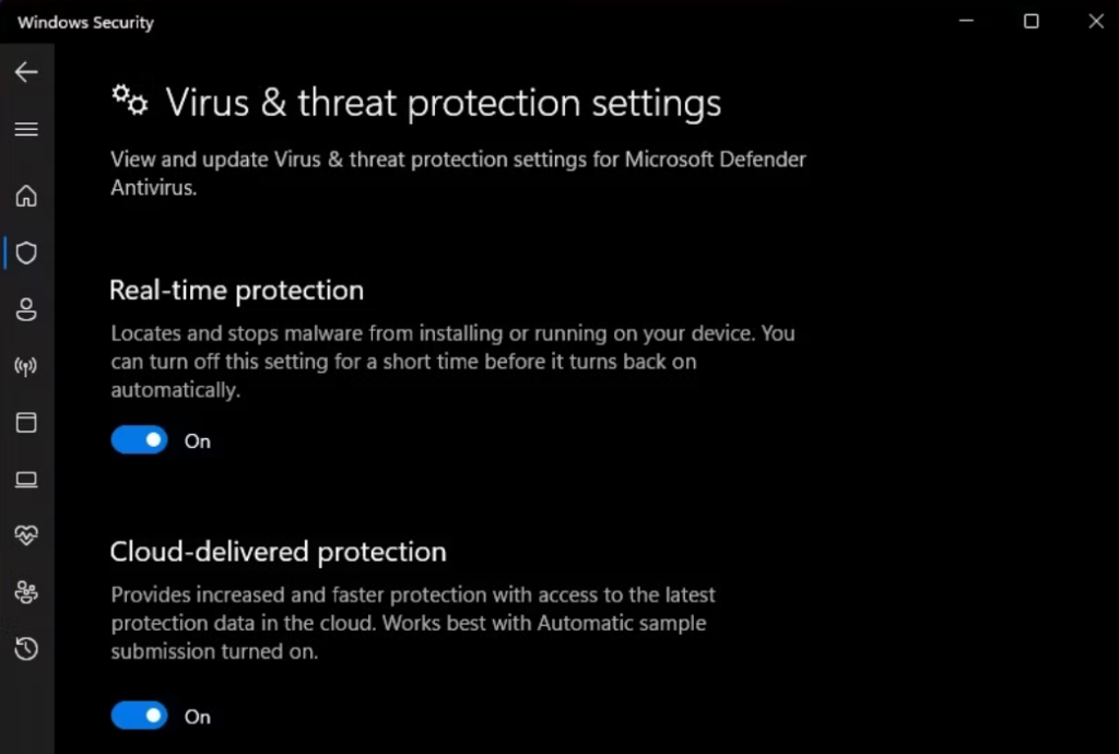 Adım 7: İçinGerçek Zamanlı KorumaVeBulut tarafından teslim edilen koruma, düğmeyi değiştirKapalımod ve sonra geri dönAçık.