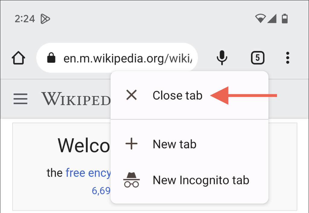 Bu yöntem bazı tarayıcılar üzerinde çalışmaz. Örneğin, Samsung Internet tarayıcısındaki sekme göstergesinin uzun süre basması yeni bir sekme açar. Bu durumda, sekmeyi kapatmak için sekme değiştiriciyi kullanın.