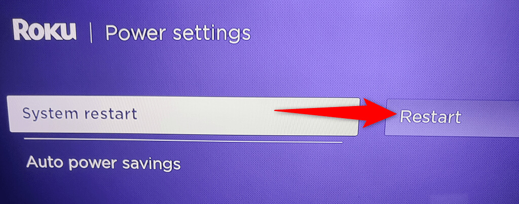 Roku'nuzu erişerek yeniden başlatabilirsinizAyarlar>Sistem>Güç>Sistem Yeniden Başlat>Tekrar başlat.