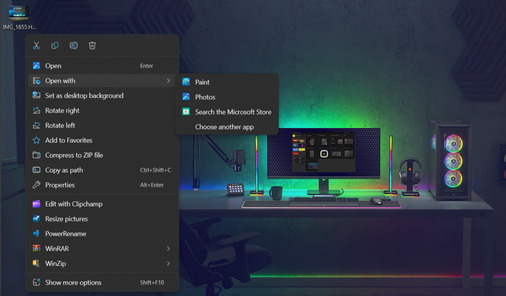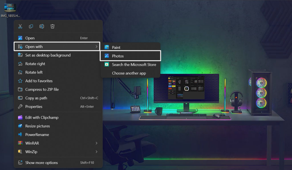 2.Şimdi tıklayınAçılmakve seçFotoğrafBağlam menüsünde.