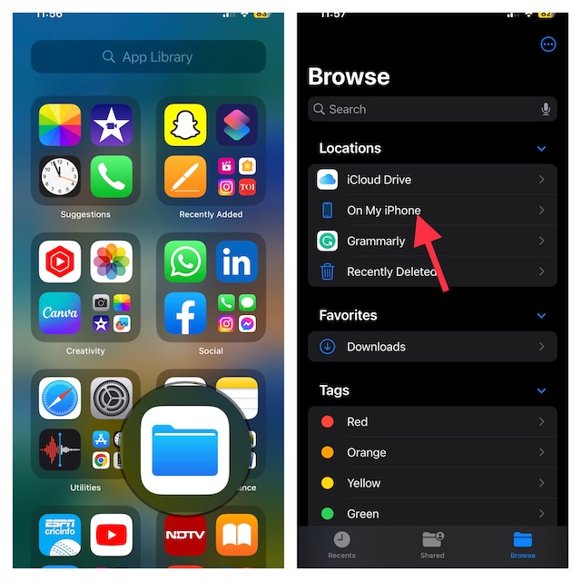 3.Sonra aç"Dosyalar" uygulamasıve dokunun"İPhone'umda".