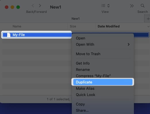 Aynı noktada bir dosyanın veya klasörün bir kopyasını yapmak için sağ tıklayın veya tutunKontrolVe tıklayın ve seçinKopyalamak. Bu, dosyayı veya klasörü kopyalar ve “kopyala” adına adına yerleştirir.