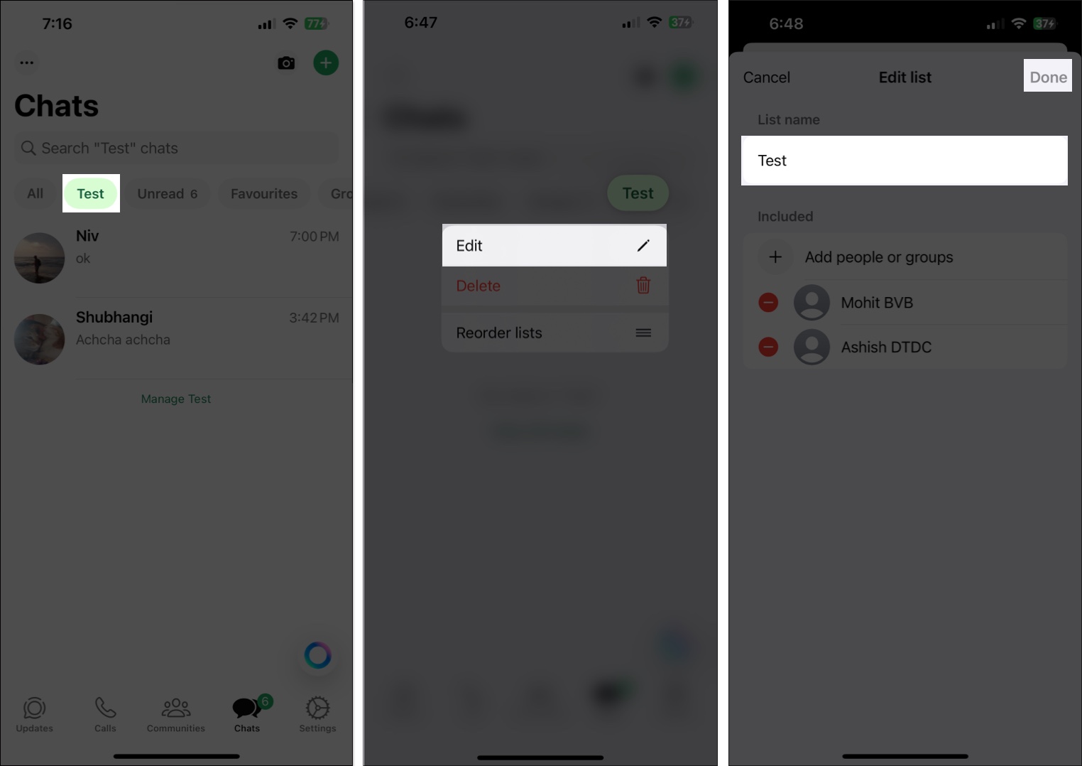 WhatsApp'ta özel bir listeyi yeniden adlandırın